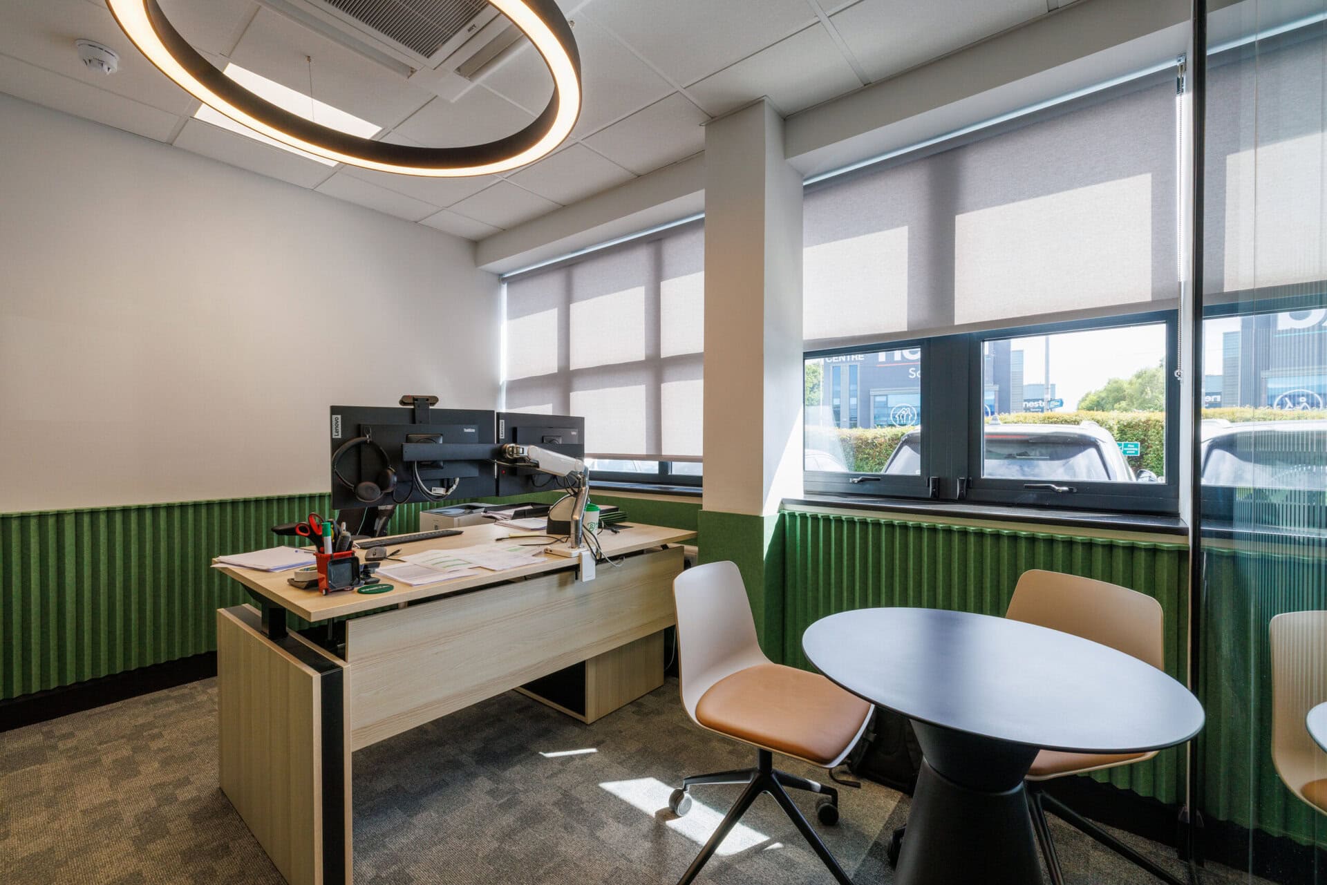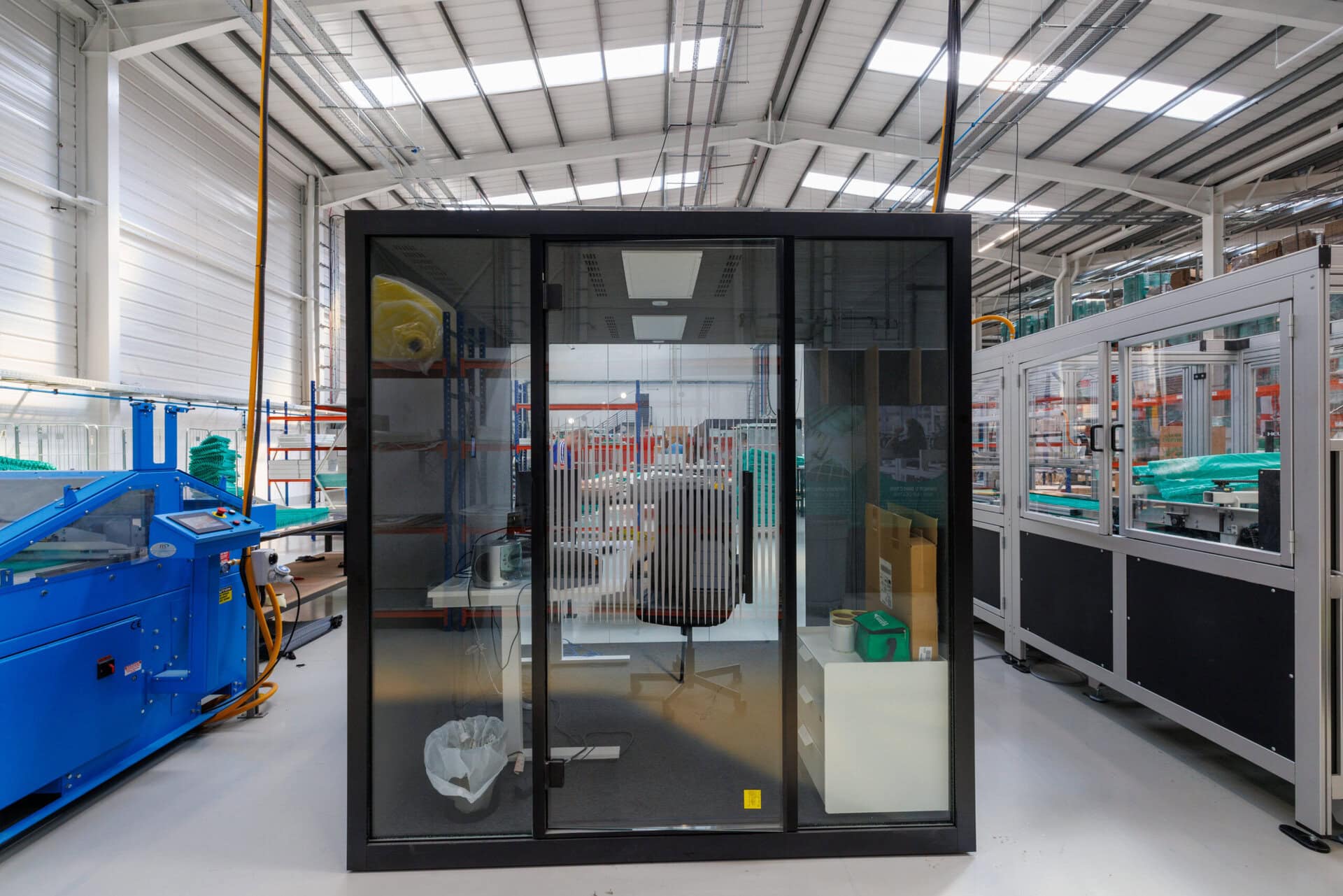 As part of our loose furniture package, our scope included a comprehensive mix of acoustic pods for both the industrial, production and warehouse areas, as well as the office workspace. Ergonomic performance was a key focus throughout, with electric sit-stand workstations, Humanscale monitor arms and task seating specified to support comfort, flexibility and wellbeing.